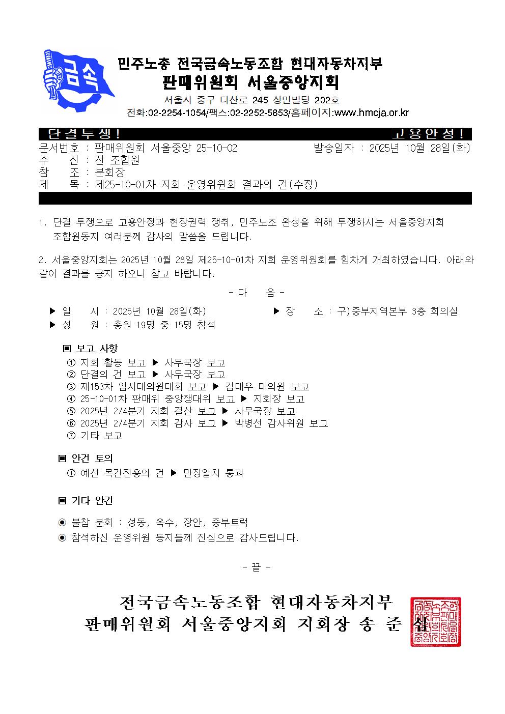 Á¦25-10-01Â÷ Áöȸ ¿î¿µÀ§¿øÈ¸ °á°úÀÇ °Ç