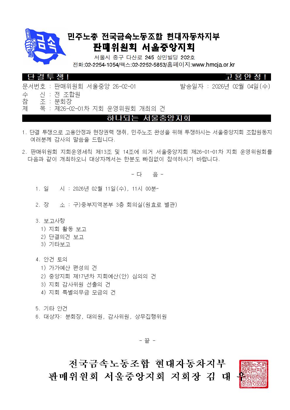 Á¦26-02-01Â÷ Áöȸ ¿î¿µÀ§¿øÈ¸ °³ÃÖÀÇ °Ç