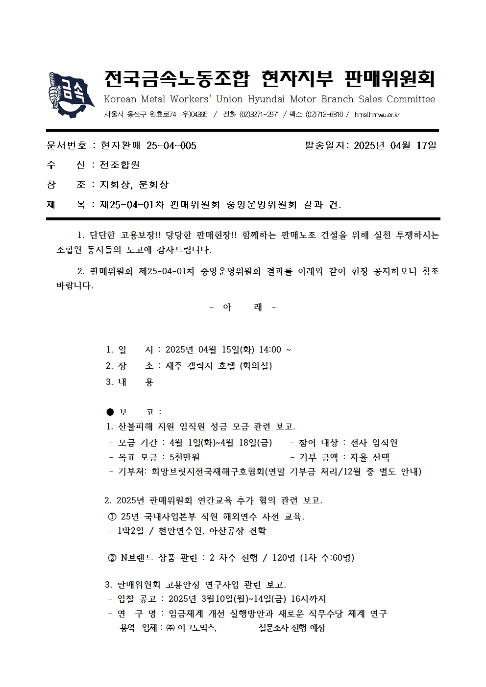 | ÀÌÀü±Û | 2025³â ÆÇ¸ÅÀ§¿øÈ¸ ³ë»çÇùÀÇȸ À§¿ø °£´ãȸ °³ÃÖ °Ç |